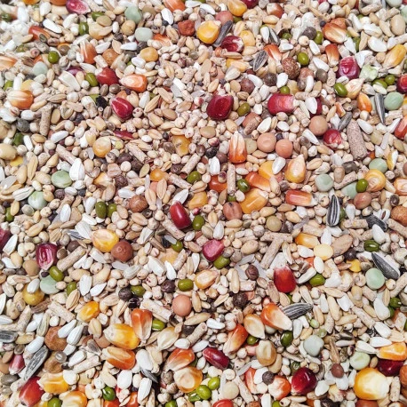En raison de la présence de toutes ces céréales et graines riches en énergie et de l’ajout des grains Pro Immune, source d’énergie, de méthionine, d’acides aminés, de lysine et de zinc.